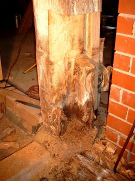 Zwei Tage später war das Holz beider Ständer am Boden ersetzt,