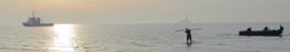 TrischenWeit draußen an der Außenkante des Dithmarscher Wattenmeeres liegt die kleine Insel Trischen. Bis vor kurzem verlagerte sie sich um rund 30 m im Jahr und wurde dabei kleiner, nun wird sie nur noch kleiner. Einst gab es hier sogar einen Koog, alles was dazugehörte ist inzwischen im Westen untergegangen. Keinen Anleger, kein Steg, einzig eine Notbarke und eine kleine Hütte auf Stelzen gibt es noch. Dort wacht ein Vogelwart oder eine Vogelwartin über die vielen rastenden oder brütenden Tiere.Viele Teile der Hütte benötigten 2013 - 2016 dringende Reperaturen. Per Schiff ging es zur Arbeit. |